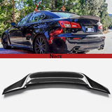 The NINTE trunk wing spoiler is designed to increase downforce for your 06-13 Lexus IS IS250 IS350 ISF. This stylish spoiler offers a sleek profile to your vehicle and helps improve overall aerodynamics.